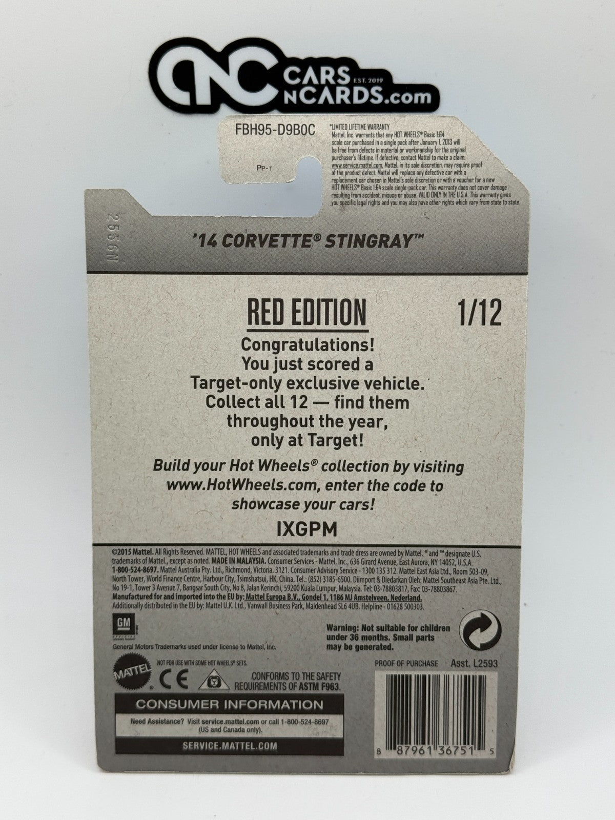 2017 Hot Wheels Red Edition 1/12 '14 Corvette Stingray (Soft Corners)