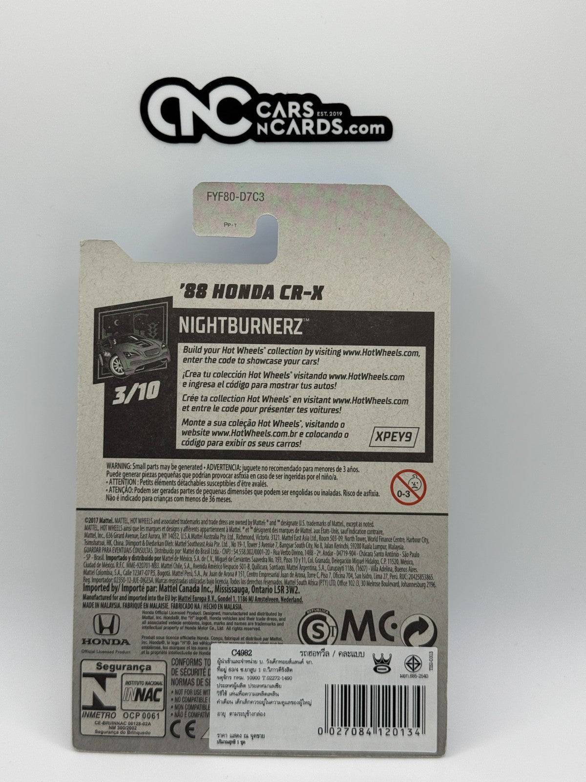 2019 Hot Wheels Nightburnerz 3/10 '88 Honda CR-X Black