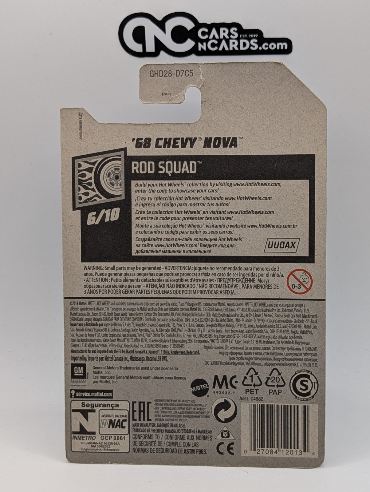 2020 Hot Wheels Rod Squad 6/10 '68 Chevy Nova Green 73/250 (Card Damage)